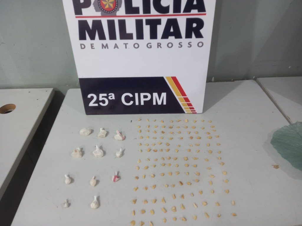 Policiais militares da 25ª Companhia Independente apreenderam, na noite desta terça-feira (16.05), 140 porções de substância análogas à pasta base, e prenderam um homem, de 40 anos, por tráfico ilítico de drogas, no bairro Jardim Potiguar, em Várzea Grande.