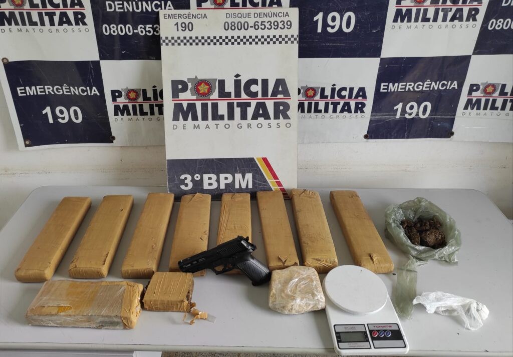 Policiais militares do 3º Batalhão realizaram a prisão de um homem de 37 anos por tráfico ilícito de drogas, na manhã desta sexta-feira (17.03), em Cuiabá. Na ação, a PM apreendeu 10 tabletes e porções de substância análoga à maconha e um simulacro de arma de fogo.