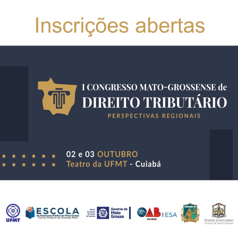 A Escola Superior da Magistratura de Mato Grosso (Esmagis-MT) é uma das instituições responsáveis pela realização do “I Congresso Mato-grossense de Direito Tributário – Perspectivas Regionais”, que ocorre nos dias 2 e 3 de outubro, no teatro da Universidade Federal de Mato Grosso (UFMT), em Cuiabá.