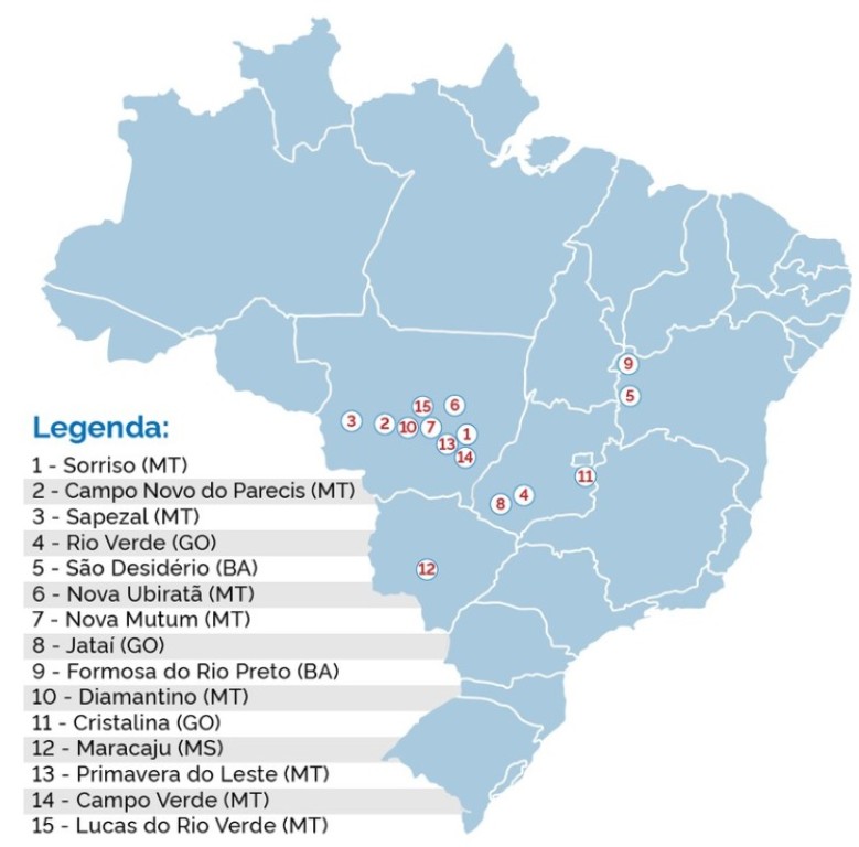 Em Minas Gerais, encontram-se 11 e na Bahia, 7 municípios, Paraná 3 municípios, São Paulo 2 e o restante, em outros estados.