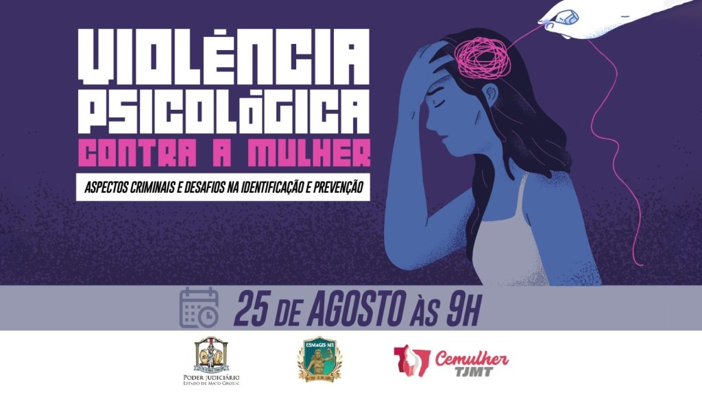 O curso presencial “Violência psicológica contra a mulher: aspectos criminais e desafios na identificação e prevenção” ainda está com inscrições abertas. O evento será realizado no dia 25 de agosto, no Tribunal de Justiça de Mato Grosso, das 9h às 17h. Magistrados e magistradas de comarcas do interior podem se inscrever até o dia 14 de agosto. Para os demais participantes, as inscrições podem ser feitas até o dia 24 de agosto. As vagas são limitadas.