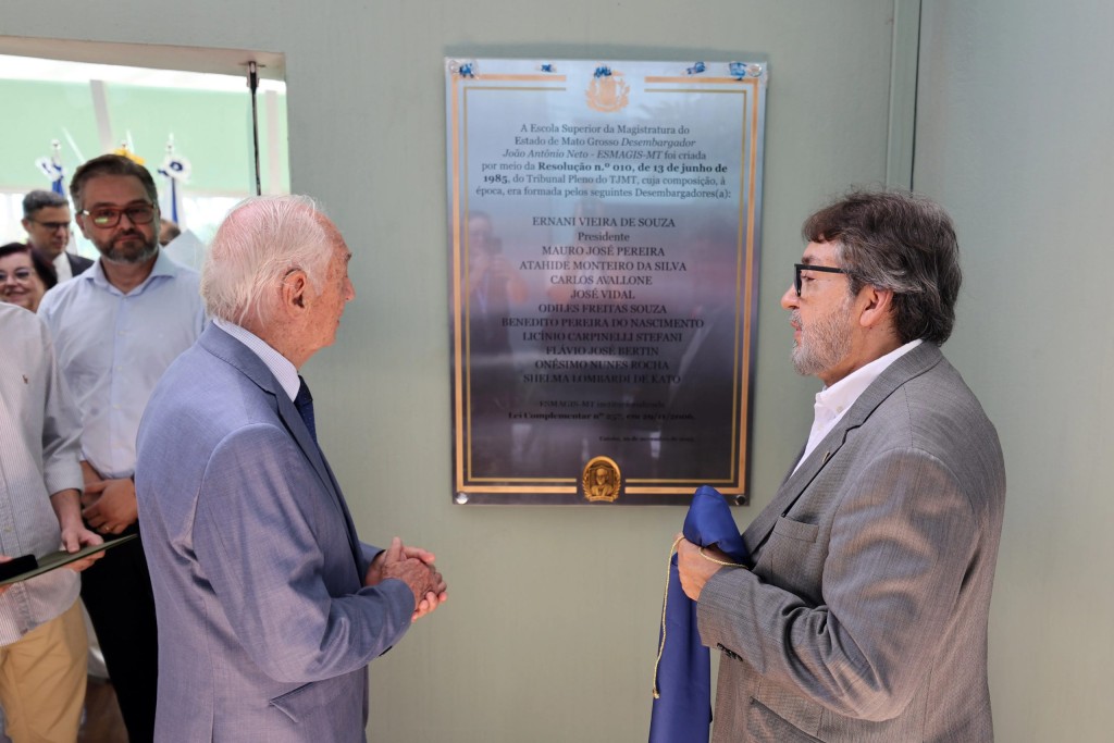 Na ocasião, foram homenageados todos os desembargadores que compunham o Tribunal Pleno no dia da institucionalização da Esmagis-MT, que receberam a medalha Comenda Desembargador João Antônio Neto pela relevância na história da Escola. São eles: Mauro José Pereira, Odiles Freitas de Souza, Licínio Carpinelli Stefani, Flávio José Bertin e Shelma Lombardi de Kato. Os desembargadores Ernani Vieira de Souza, Atahide Monteiro da Silva, Carlos Avallone, José Vidal e Onésimo Nunes Rocha receberam homenagens póstumas.