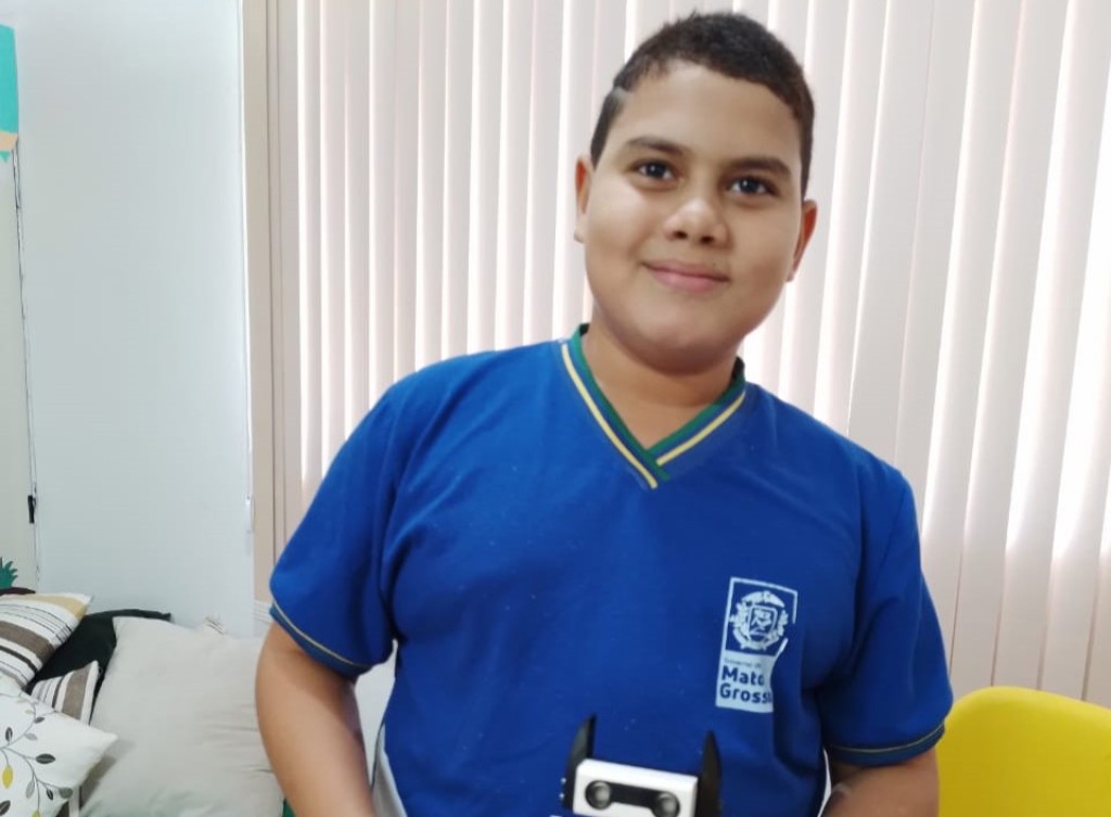 O estudante do 6º ano, Otávio Souza Coelho, de 11 anos, é um dos alunos que colocam em prática o que aprende nas aulas graças ao apoio da professora Suelene Pereira de Carvalho, intérprete de Libras, e da orientadora educacional do programa SimRobótica, Isabella Debastiani. A aula ainda tem o acompanhamento das professoras Vanessa Scherer e Siméria Cristina.