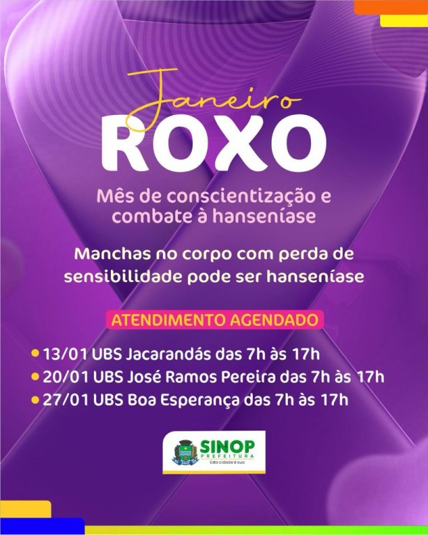 A Secretaria Municipal de Saúde dedica o “Janeiro Roxo” à conscientização e combate à hanseníase, uma doença infecciosa crônica que afeta a pele e nervos periféricos. É importante reconhecer os sintomas para diagnóstico precoce e tratamento eficaz.