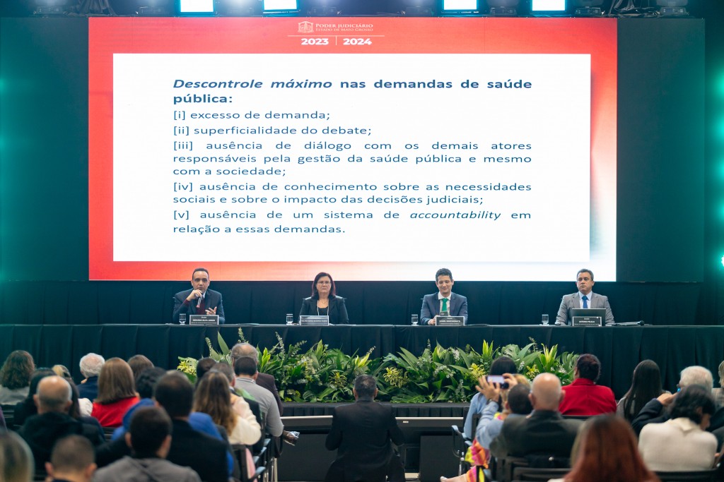 O painel “Parâmetros para revisão judicial de política pública em saúde” foi presidido pela desembargadora Helena Maria Bezerra Ramos e contou com palestras dos juízes do Tribunal de Justiça de Mato Grosso (TJMT), Gerardo Humberto da Silva Junior e Antônio Veloso Peleja Júnior, e do juiz federal Daniel Marchionatti.