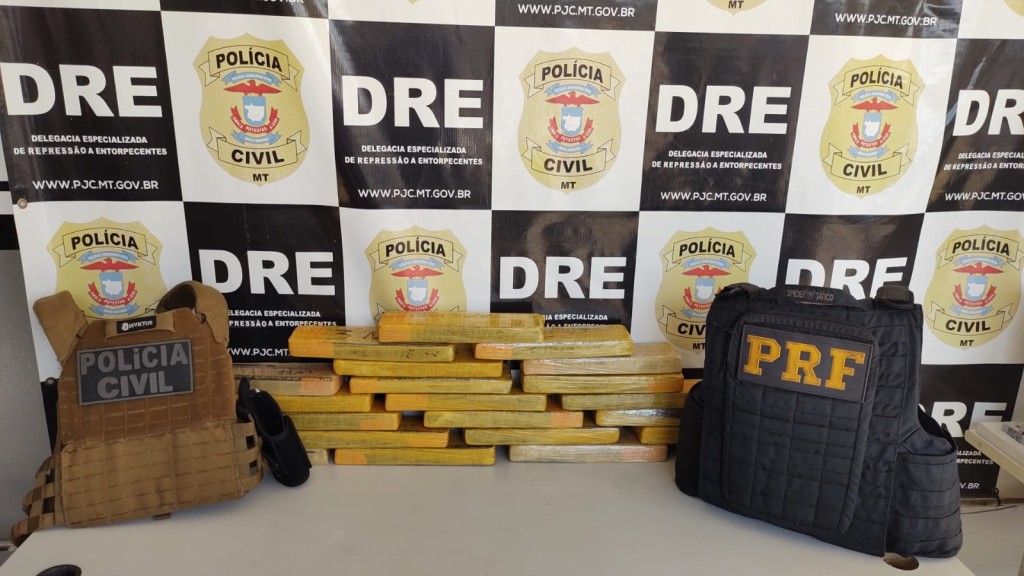 Vinte um tabletes de maconha, que eram transportado em um ônibus com destino à Cuiabá, foram apreendidos em uma ação conjunta da Polícia Civil, por meio da Delegacia Especializada de Repressão a Entorpecentes (DRE) e Polícia Rodoviária Federal (PRF), realizada nesta quarta-feira (22.03), na região da BR-364.