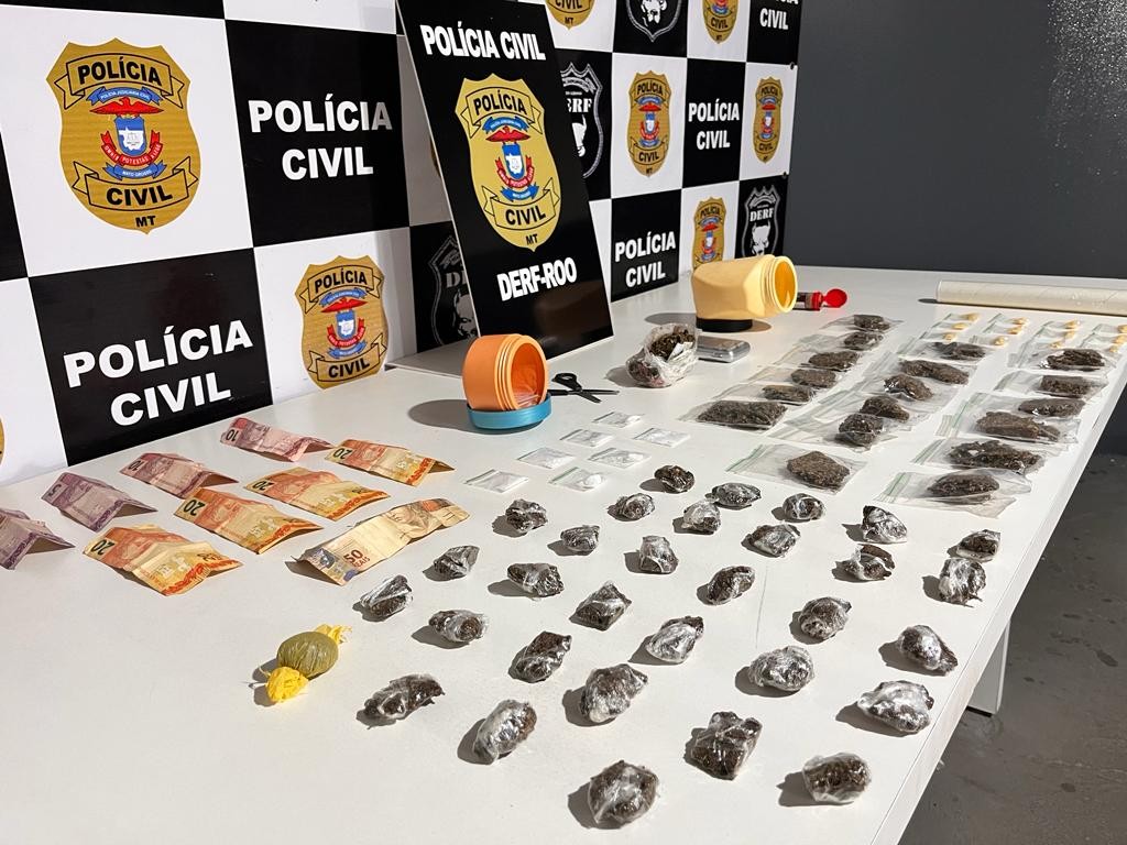 Uma jovem envolvida com o comércio de entorpecentes em Rondonópolis (212 km ao sul de Cuiabá) foi presas em flagrante pela Polícia Civil, na quinta-feira (13.07), em ação da Delegacia Especializada de Roubos e Furtos (Derf) do município. A ação resultou na apreensão de diversas porções de pasta base de cocaína, maconha e skunk, além de apetrechos relacionados ao tráfico e dinheiro.