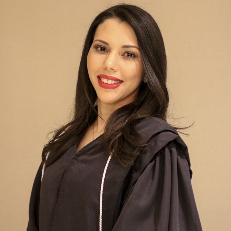 #Paratodosverem. Esta matéria possui recursos de texto alternativo para promover a inclusão das pessoas com deficiência visual. Descrição da foto: Juíza Aline Quinto Bissoni posa sorrindo para a foto. Ela é uma mulher branca, de olhos e cabelos escuros, usando batom vermelho e toga.
