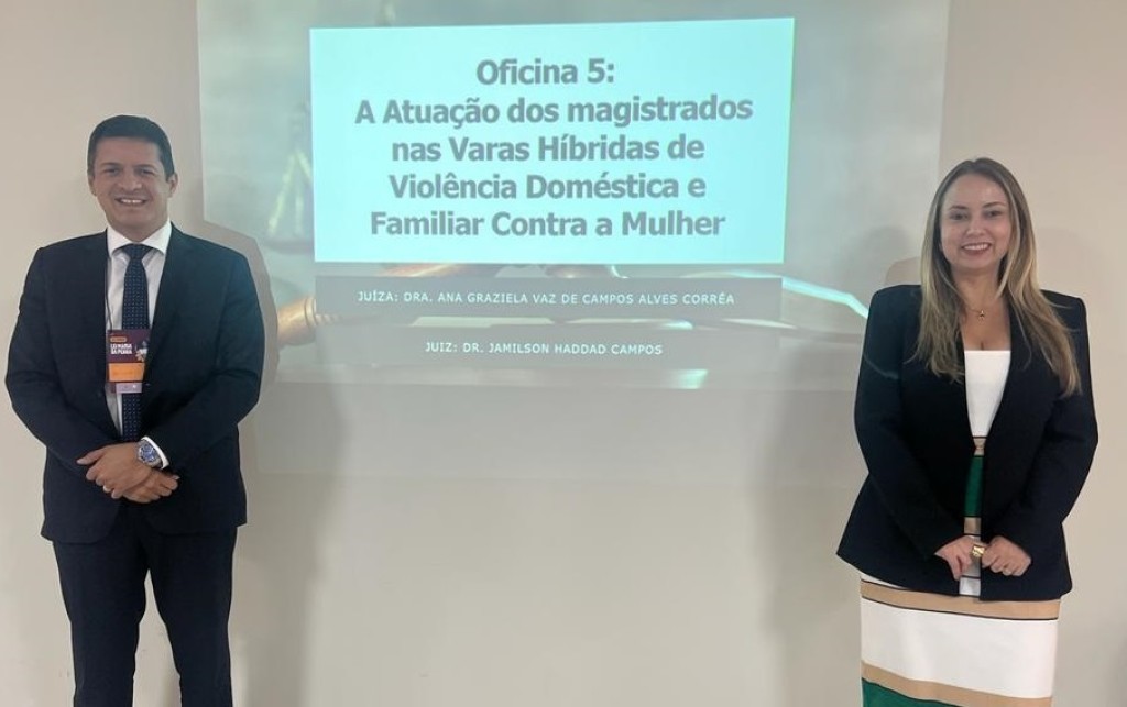 O juiz da 3ª Vara Cível de Juizados Especiais, Jamilson Haddad Campos, e a juíza da 1ª Vara Especializada de Violência Doméstica e Familiar Contra a Mulher de Cuiabá, Ana Graziela Vaz de Campos Alves Corrêa, coordenaram a oficina “A atuação dos magistrados nas Varas Híbridas de Violência Doméstica e Familiar Contra a Mulher”, nesta segunda-feira (08.08), durante a XVII Jornada Lei Maria da Penha, promovida pelo Conselho Nacional de Justiça (CNJ). O evento foi realizado na Escola Superior da Magistratura do Estado do Ceará (Esmec), em Fortaleza (CE).
