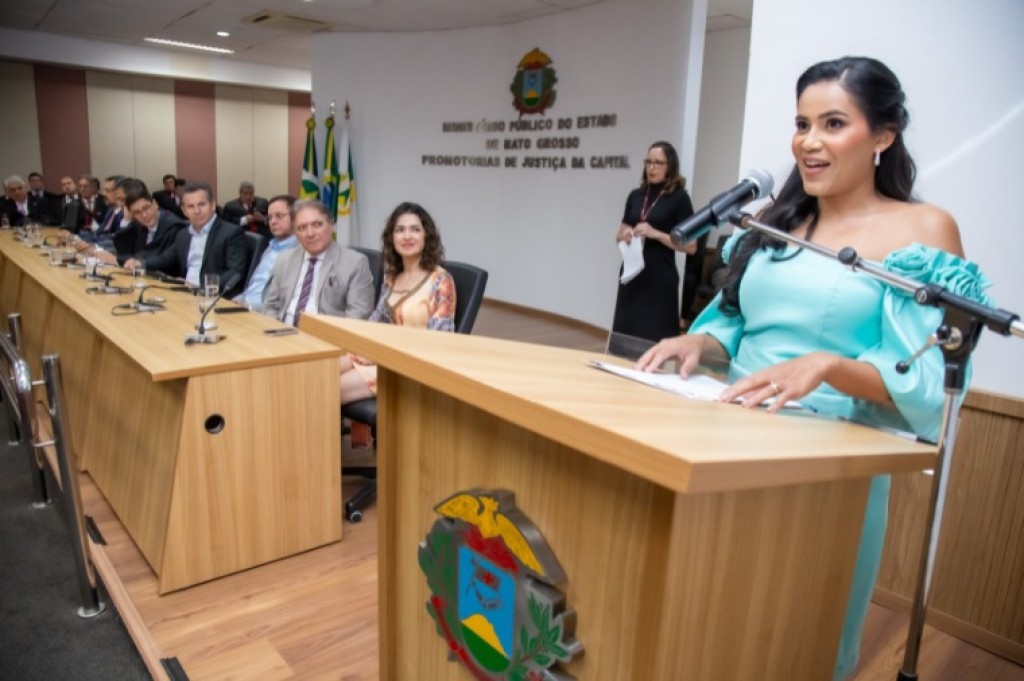 A oportunidade de promover a justiça e de atuar na defesa do regime democrático e na busca por uma sociedade mais justa foi destacada pela representante da turma dos 11 novos promotores de Justiça substitutos, Fabiane Oliveira Scarcelli de Moraes, como uma importante missão da carreira institucional. A solenidade de posse ocorreu nesta sexta-feira (30), no auditório das Promotorias de Justiça de Cuiabá, com a participação de representantes de várias instituições, poderes, amigos e familiares dos empossados.