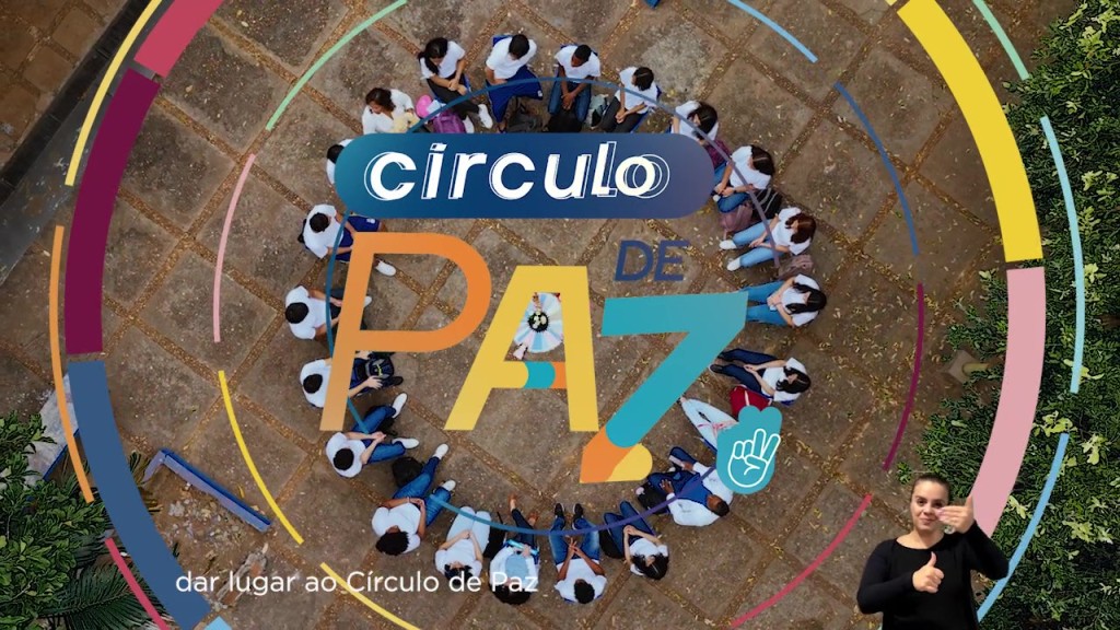 #Paratodosverem. Esta matéria possui recursos de texto alternativo para promover a inclusão das pessoas com deficiência visual. Primeira imagem: arte colorida. Ao centro da imagem, crianças vestidas com uniforme estão sentadas em círculo, no pátio externo da escola. A imagem possui recursos gráficos nas cores rosa claro, rosa escuro, azul claro, verde claro e amarelo claro que em formato de círculos, acolhem a imagem das crianças no interior da arte. Um círculo menor ao centro da imagem traz as palavras ‘Círculo de Paz’ que faz referencia ao nome da campanha. Um pequeno símbolo no canto direito inferior da imagem traz um ícone com dois dedos em formato “V” acenando com um gesto positivo.