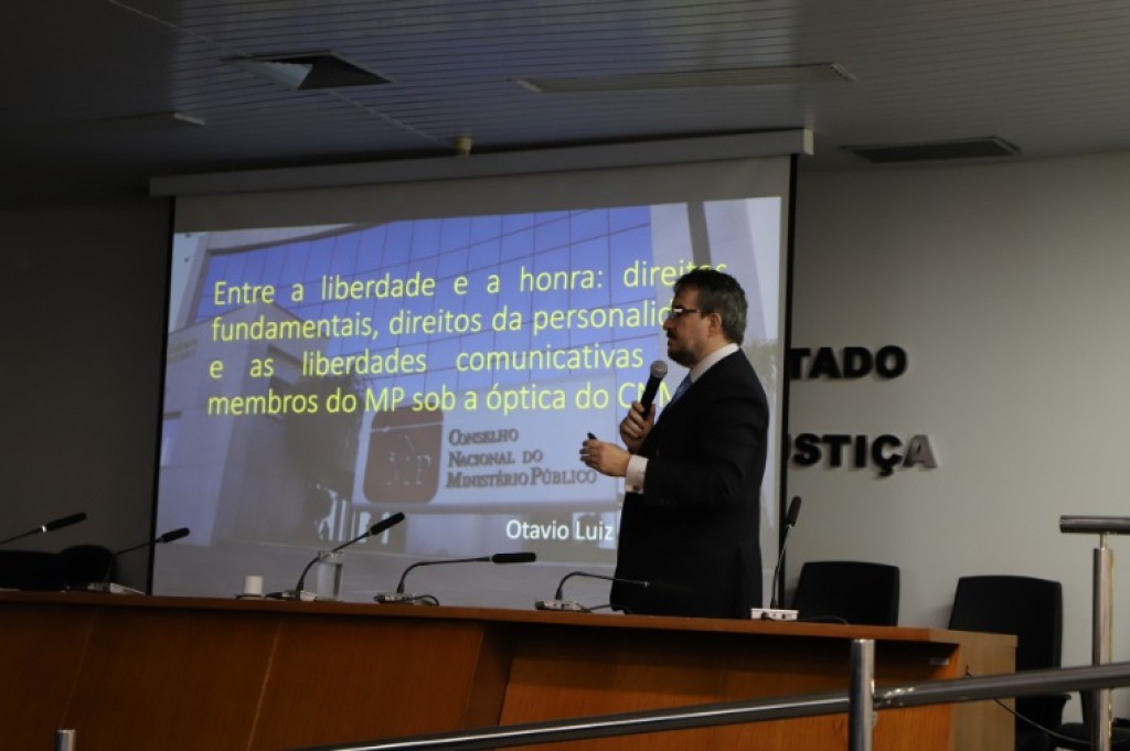 O palestrante falou inicialmente sobre liberdade de expressão, apresentou conceitos, modelos dogmáticos e conflitos envolvendo liberdades comunicativas. Ao adentrar especificamente na liberdade de expressão no Ministério Público, o conselheiro destacou que o “CNMP te sido instado frequentemente a analisar a compatibilidade entre as manifestações escritas ou faladas de membros do Ministério Público brasileiro e seus deveres funcionais em face do direito à liberdade de expressão”.