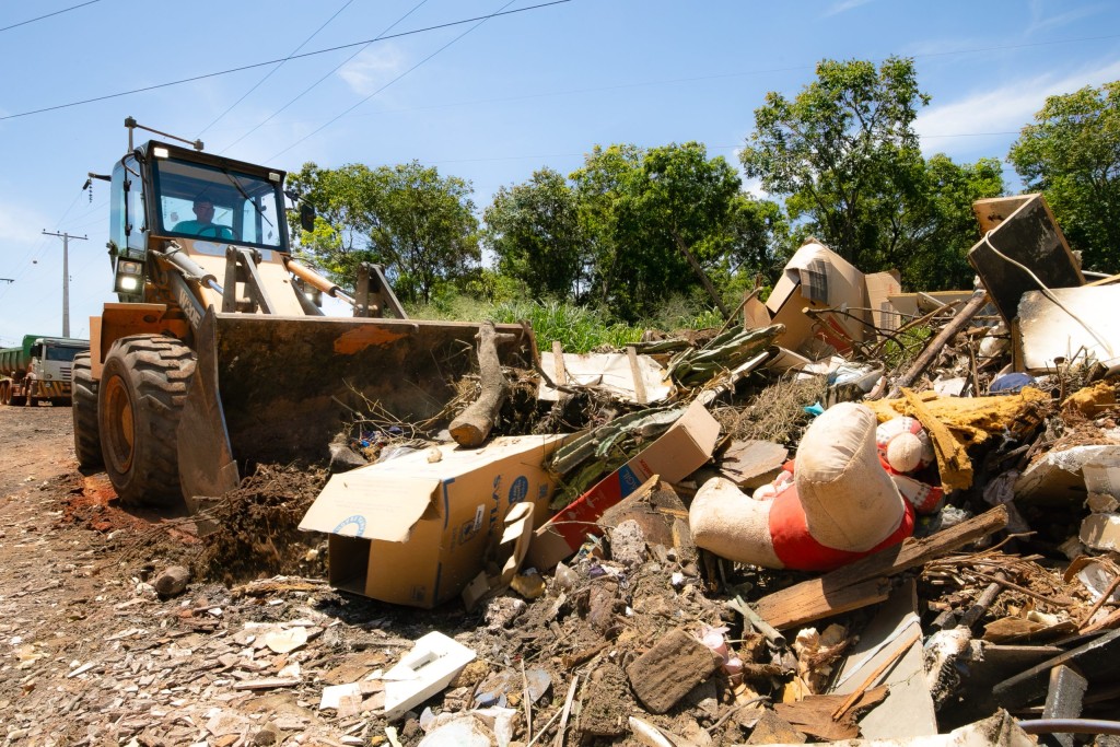 A operação conta com retroescavadeiras, pás carregadeiras, caminhões trucados e caminhões toco, garantindo rapidez e eficiência na remoção dos resíduos e na destinação ambientalmente correta do material recolhido.