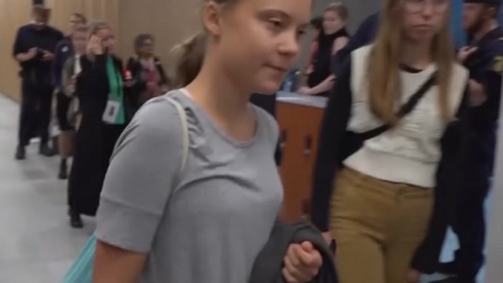 “Falei inicialmente com algumas pessoas e depois abordamos um grupo no centro da multidão. Falei inicialmente com uma mulher e ela foi embora; depois disso falei com Thunberg. Perguntei quais eram as suas intenções e perguntei se ela desejava permanecer e seria presa, e se ela queria sair e continuar o seu protesto na calçada. Ela respondeu com palavras, dizendo: ‘Vou ficar.’ Eu então informei a ela que ela seria presa e removida da área.”