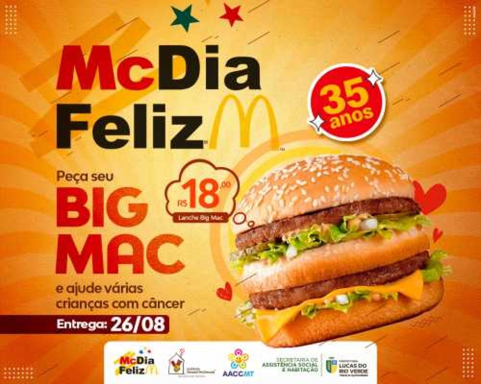 A Prefeitura de Lucas do Rio Verde, por meio da Secretaria de Assistência Social e Habitação, apoia a 35ª edição do McDia Feliz, que será realizada no dia 26 de agosto, beneficiando 72 projetos de mais de 51 instituições que atuam na oncologia pediátrica de norte a sul do país.