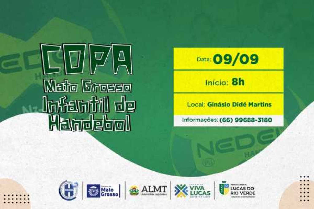 A Prefeitura de Lucas do Rio Verde, por meio da Secretaria de Esporte e Lazer, sedia a 4ª etapa do Campeonato Mato-grossense de Handebol Infantil 2023. O evento será no dia 9 de setembro a partir das 8 horas e segue no dia 10 de setembro, no ginásio Didé Martins, bairro Luiz Carlos Tessele Junior.