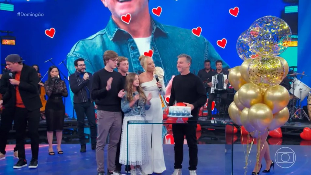 Luciano Huck completou 52 anos neste domingo (3), e no final do programa ‘Domingão’, foi surpreendido por sua família. Angélica e os três filhos do casal, Joaquim, Benício e Eva, foram para o palco comemorar o aniversário do apresentador.