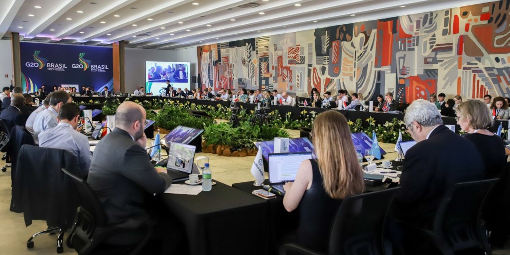 O lema da presidência brasileira do G20 é “Construindo um Mundo Justo e um Planeta Sustentável”.
