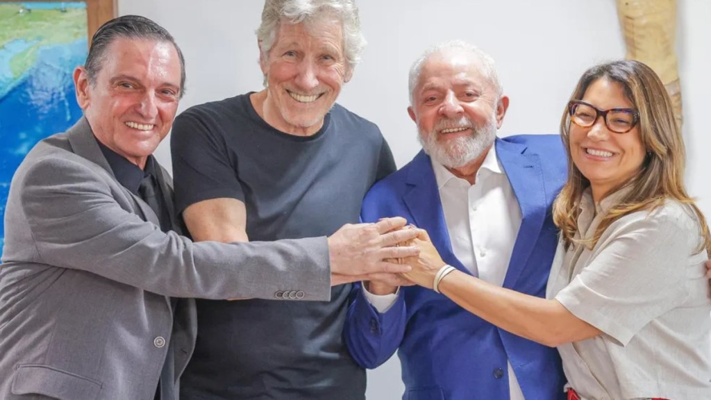 Nesta segunda-feira (23), o presidente Luiz Inácio Lula da Silva (PT) recebeu no Palácio do Planalto o cantor e fundador da banda Pink Floyd, Roger Waters. Também presentes estavam a primeira-dama, Janja da Silva, e o músico Paulo Miklos, conhecido por sua participação na banda Titãs.