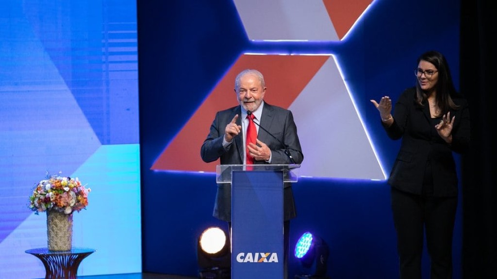 Lula durante cerimônia de posse da nova presidente da Caixa Econômica Federal, Maria Rita Serrano