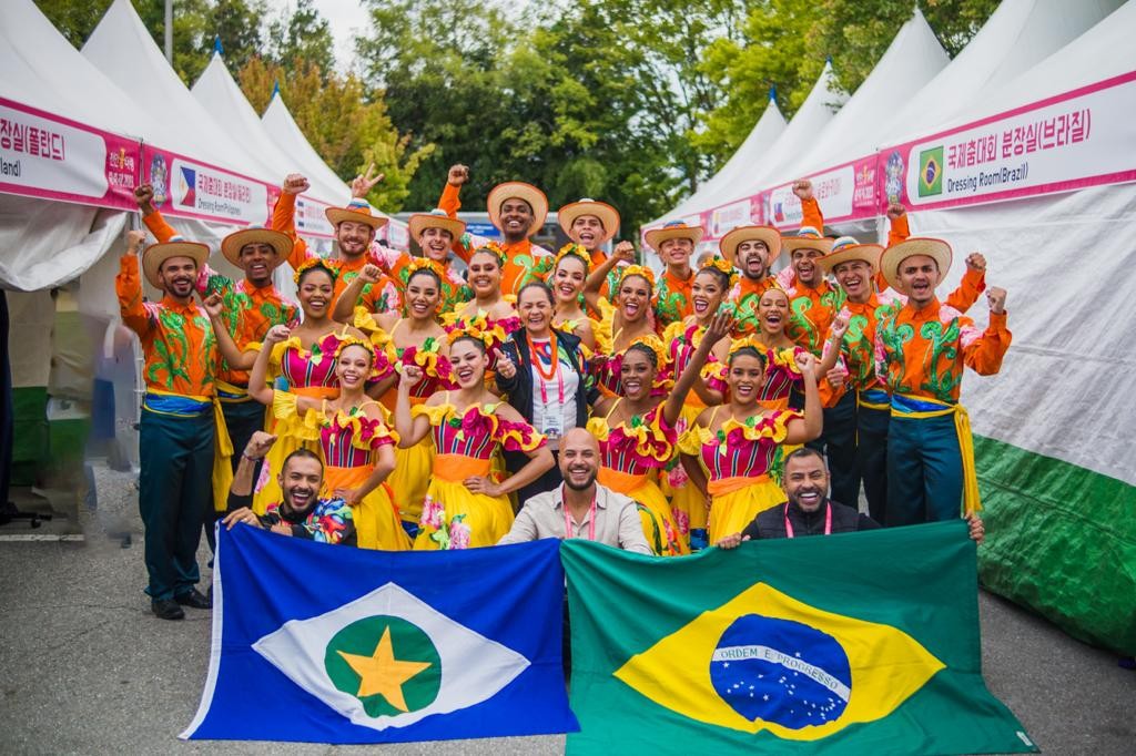 O grupo Flor Ribeirinha embarcou no dia 30 de setembro para a Coreia do Sul, focados na conquista do título mundial no ‘Cheonan World Dance Festival’, e, com dedicação e foco, os representantes do Brasil e de Mato Grosso conseguiram o quarto título de campeão mundial alcançado em diferentes países. Diretor Artístico do Flor Ribeirinha, Avinner, madrinha do grupo primeira-dama de MT, Virginia Mendes, e a fundadora do Flor Ribeirinha Domingas Leonor