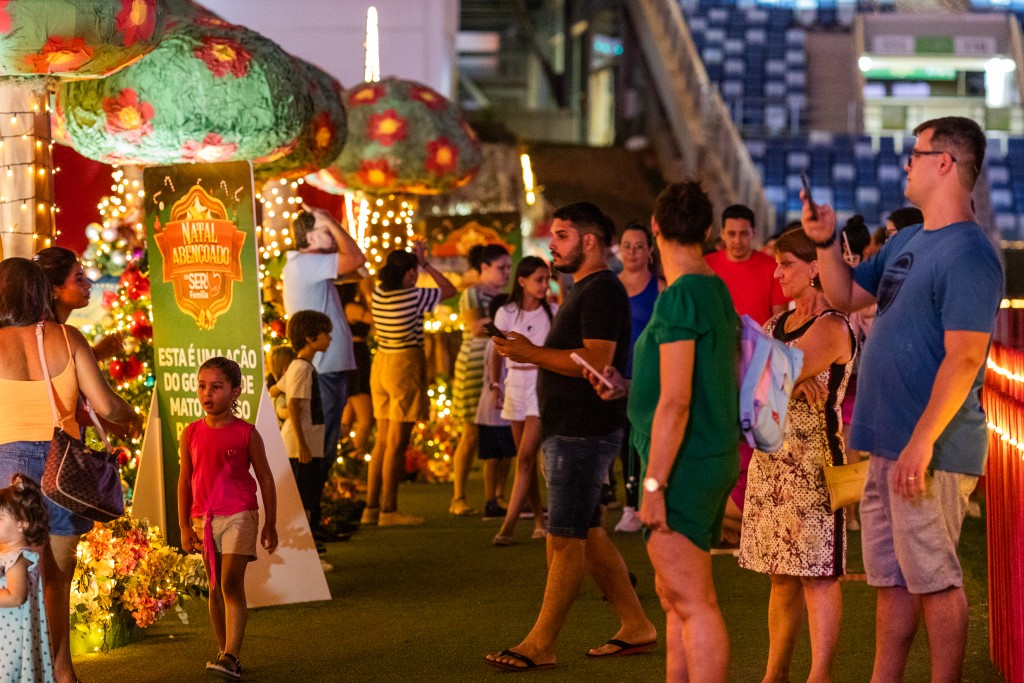 Ao todo, a cidade do Natal Abençoado é composta por 14 cenários iluminados distribuídos em 5 mil m², no entorno do gramado da Arena Pantanal, com os devidos cuidados para preservação da grama.