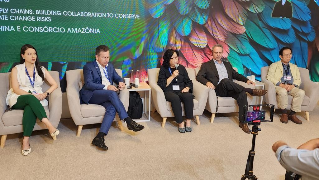 Jiaman participou do painel “Cadeias de abastecimento agrícola sustentável China-Brasil: construindo colaboração para preservar as florestas amazônicas e responder aos riscos das mudanças climáticas”, nesta terça-feira (05.12), na 28ª Conferência do Clima da Organização das Nações Unidas (ONU), a COP 28.