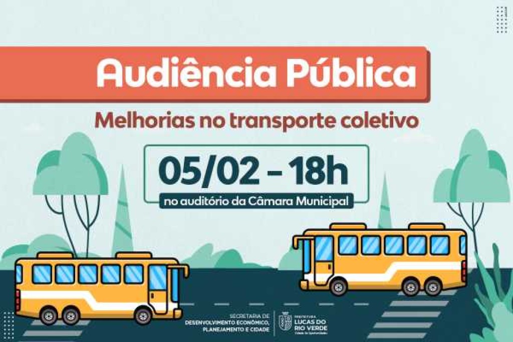 A Prefeitura de Lucas do Rio Verde, por meio da Secretaria de Desenvolvimento Econômico, Planejamento e Cidade, e Secretaria de Segurança Pública, realiza na próxima segunda-feira (05), às 18h, uma audiência pública sobre o transporte coletivo do município. Na ocasião, será apresentada a proposta para o novo modelo de concessão do transporte público.