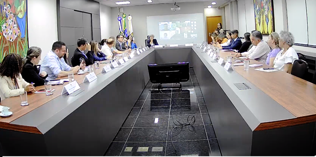#Paratodosverem. Esta matéria possui recursos de texto alternativo para promover a inclusão das pessoas com deficiência visual. Primeira foto: Imagem da sala virtual com a realização da reunião técnica entre as equipes.