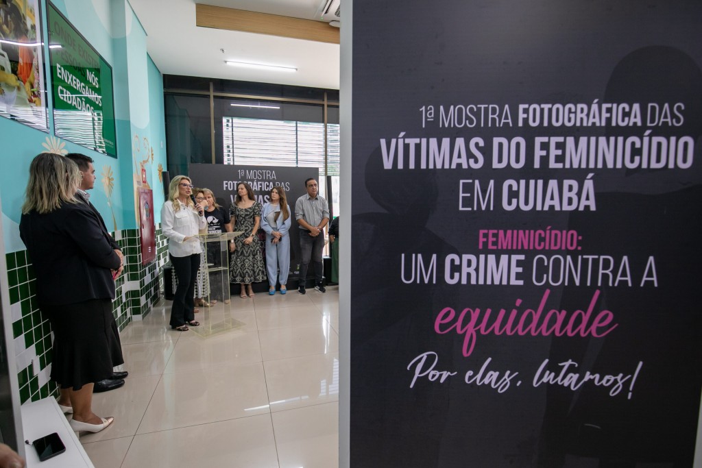 A exposição itinerante de fotografias de mulheres vítimas de feminicídio em Cuiabá começou a ser exibida nesta segunda-feira (4) no hall de entrada da Defensoria Pública de Mato Grosso.