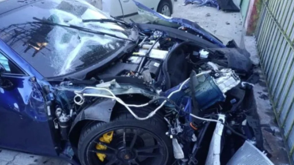 Porsche destruída após acidente em São Paulo na madrugada desse domingo (31)