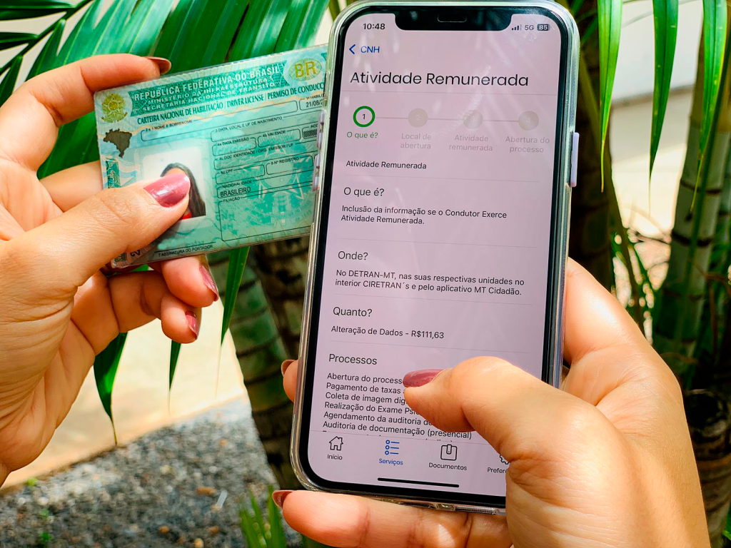 Desde que o serviço foi disponibilizado de forma online, no ano de 2020, foram abertos 5.153 processos de inclusão de atividade remunerada na CNH pelo aplicativo MT Cidadão.