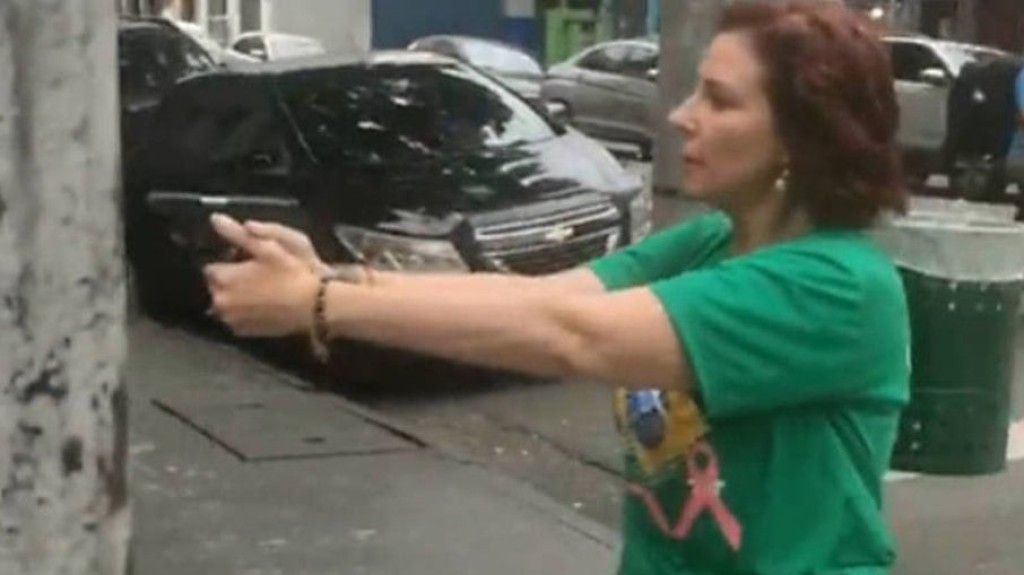 Vídeos compartilhados nas redes sociais mostram a parlamentar batendo boca com um apoio do atual presidente . Em um dado momento, ela cai e começa a perseguir o homem armada. Um assessor da deputada chegou a atirar no chão.
