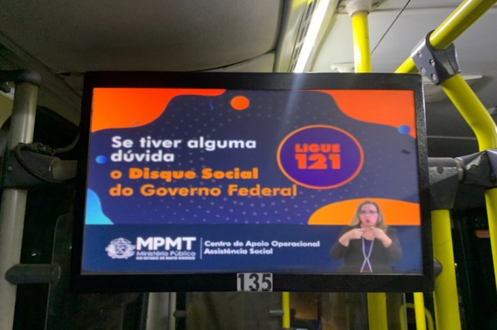 O Ministério Público do Estado de Mato Grosso, por meio do Centro de Apoio Operacional (CAO) Assistência Social, iniciou mobilização com o objetivo de ampliar o acesso das pessoas em situação de vulnerabilidade aos programas sociais do Governo Federal. Desde o início desta semana, quarenta linhas de ônibus que atendem o transporte coletivo em Cuiabá estão divulgando gratuitamente vídeo de mídia indoor com informações aos passageiros sobre como acessar os benefícios.