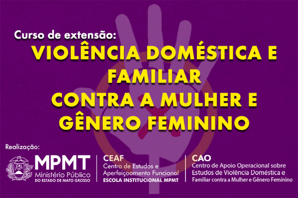 Começam na próxima quarta-feira (26) as inscrições para o curso de extensão “Violência Doméstica e Familiar contra a Mulher e Gênero Feminino”, realizado pelo Centro de Estudos e Aperfeiçoamento Funcional (Ceaf) – Escola Institucional do Ministério Público do Estado de Mato Grosso, em parceria com o Centro de Apoio Operacional (CAO) sobre Estudos de Violência Doméstica e Familiar Contra a Mulher e Gênero Feminino. As inscrições podem ser feitas até o dia 11 de agosto, aqui.