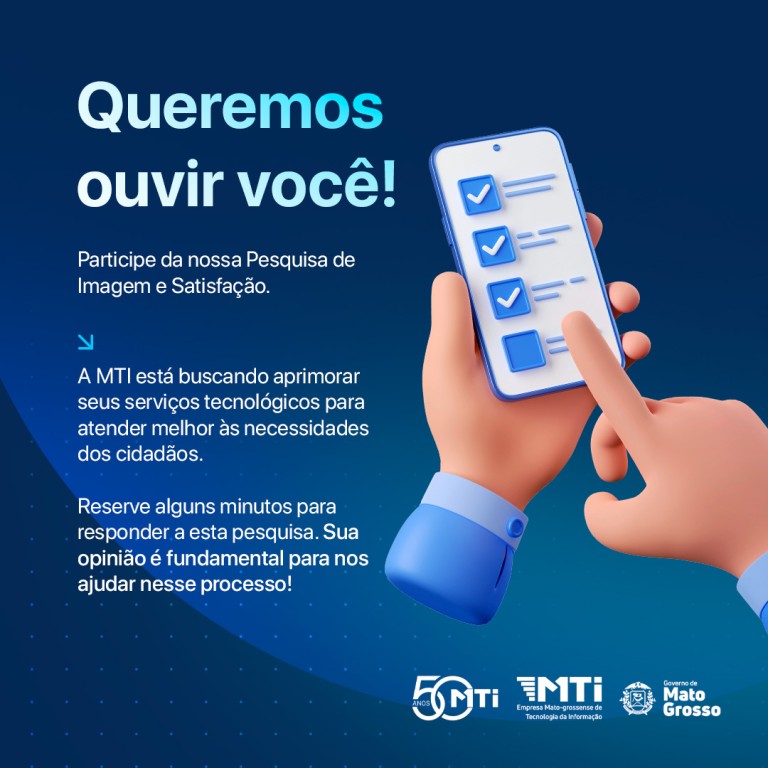 A Empresa Mato-grossense de Tecnologia da Informação (MTI) iniciou a aplicação da Pesquisa Institucional de Imagem e Satisfação de 2023 para identificar oportunidades de melhorias e avanços nos serviços.