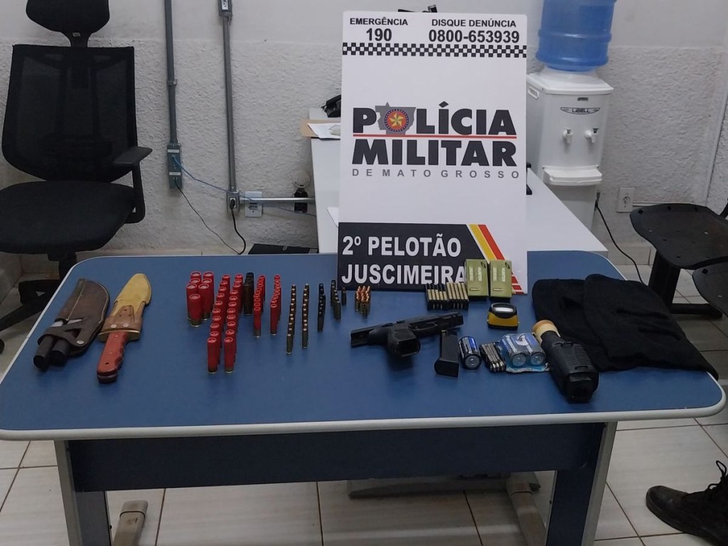Ao serem questionados sobre os materiais, a suspeita confessou ser proprietária de todos os objetos. Para os militares, a mulher apresentou apenas documento de registro da arma, mas não os documentos e notas fiscais necessários para porte dos demais objetos.