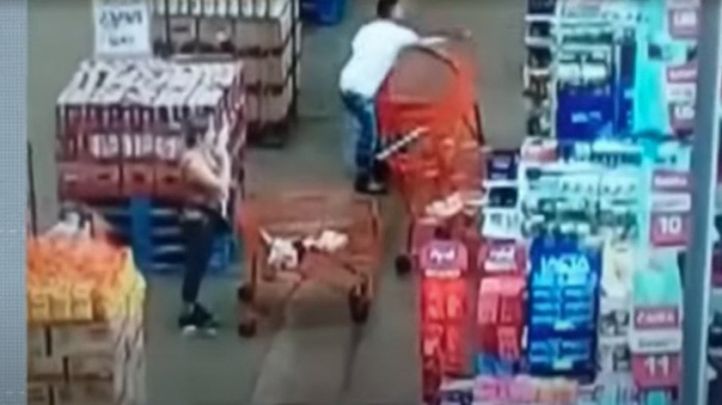 Homem joga carrinho de compras em mulher dentro de supermercado em Goiás