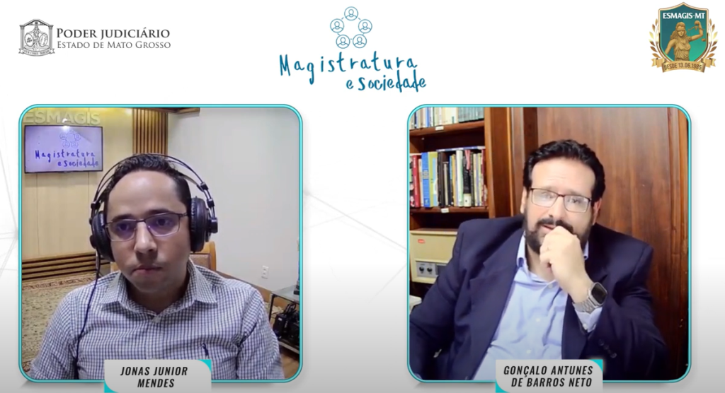 Na próxima quarta-feira (7 de junho) vai ao ar a 20ª edição do programa Magistratura e Sociedade, com uma entrevista do professor Jonas Júnior Mendes. A iniciativa, promovida pela Escola Superior da Magistratura de Mato Grosso (Esmagis-MT), conta com a participação do juiz Gonçalo de Antunes de Barros Neto e poderá ser conferida no canal oficial do Tribunal de Justiça de Mato Grosso no YouTube. Clique neste link para assistir à chamada do programa.
