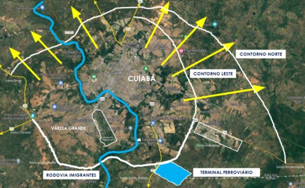O terminal previsto na minuta do novo plano diretor, mesmo local apontado pela Rumo S.A., ficará em uma posição estratégica, entre o Distrito Industrial e a Rodovia dos Imigrantes, na saída para Santo Antônio de Leverger, em Cuiabá.