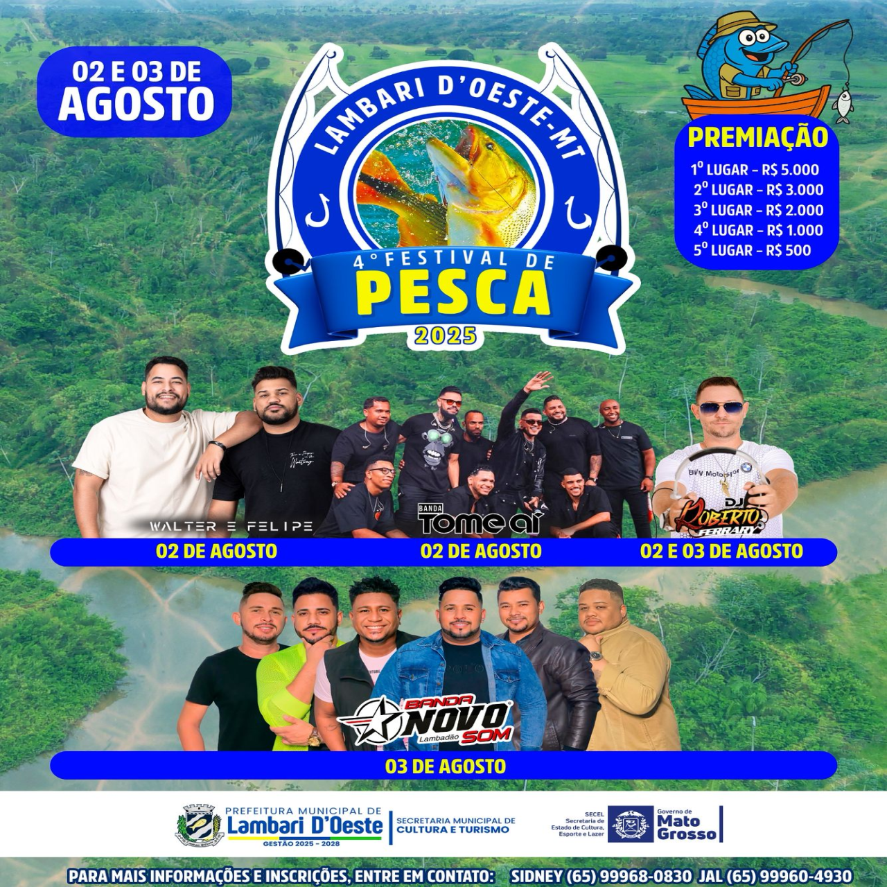 Lambari D’Oeste (MT) — Com grande entusiasmo e sentimento de orgulho, a Prefeitura Municipal de Lambari D’Oeste e toda a comunidade local convidam você para participar do 4º Festival de Pesca 2025, um evento que exalta a cultura regional, celebra nossas tradições e valoriza a exuberância dos rios que moldam o modo de vida de nossa gente.