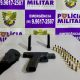 As armas estavam desmuniciadas e acondicionadas de forma adequada. Em seguida, durante abordagem ao suspeito, foi encontrado uma pistola em sua cintura. O homem relatou que a arma era registrada em seu nome, mas não apresentou a documentação obrigatória no momento da abordagem.