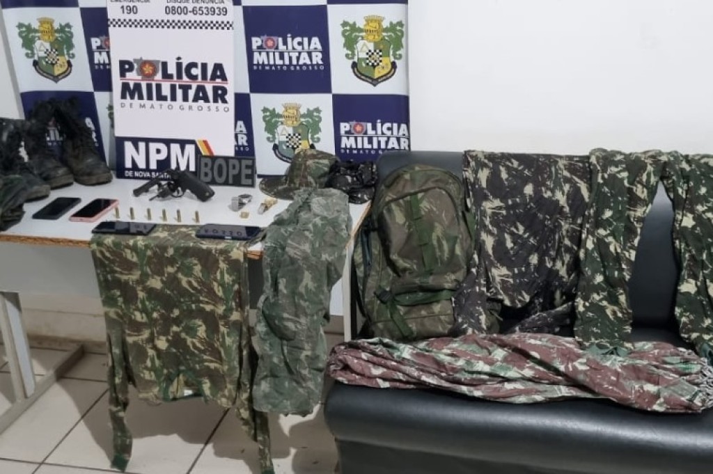 Foram apreendidos com o grupo um revólver calibre 38, seis munições intactas, dois relógios de pulso, um anel de ouro, cinco celulares, dois pares de coturnos e diversas peças de roupas camufladas.