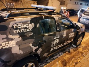 Os policiais seguiram ao endereço e encontraram três suspeitos, que fugiram para uma região de mata. Nas buscas, dois homens foram encontrados enquanto tentavam entrar em um veículo de transporte por aplicativo. A dupla estava com uma sacola contendo porções de drogas e uma arma de fogo artesanal.