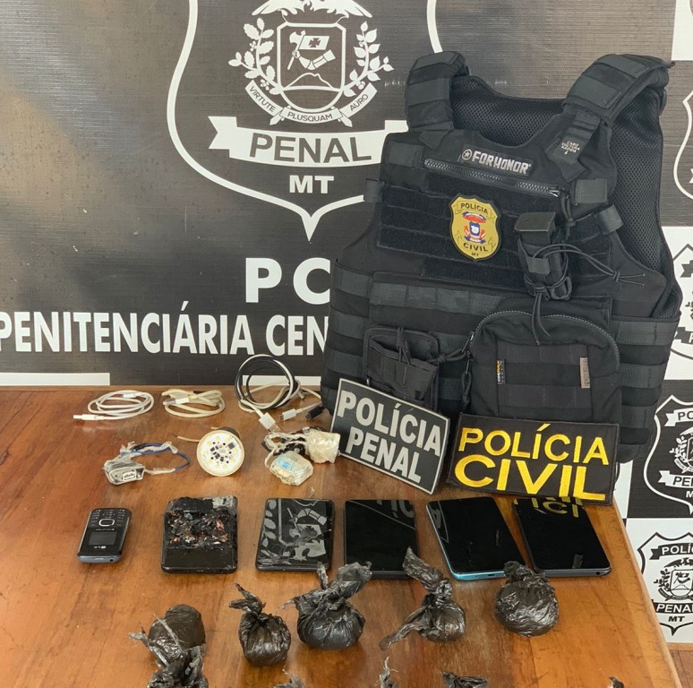 Um dos mandados foi cumprido na Penitenciária Central do Estado (PCE), em Cuiabá, contra um líder da facção criminosa. Na cela onde ele está detido foram localizados seis aparelhos celulares e 16 porções de maconha.