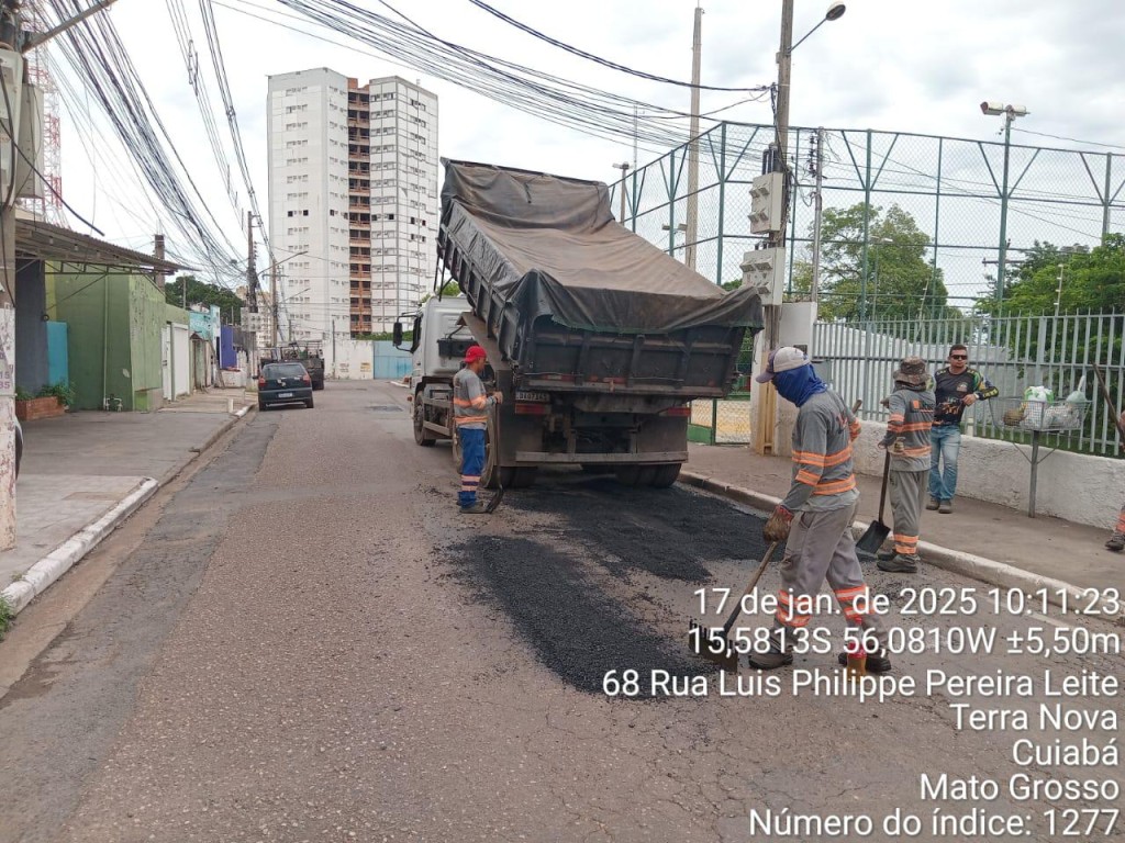 A Prefeitura de Cuiabá, por meio da Secretaria Municipal de Obras Públicas, deu continuidade nesta sexta-feira (17) à operação tapa-buracos, atendendo as ruas dos bairros Alvorada e Residencial Terra Nova. A iniciativa faz parte do cronograma de manutenção e revitalização das vias públicas da capital, que visa melhorar a infraestrutura urbana e a segurança viária.