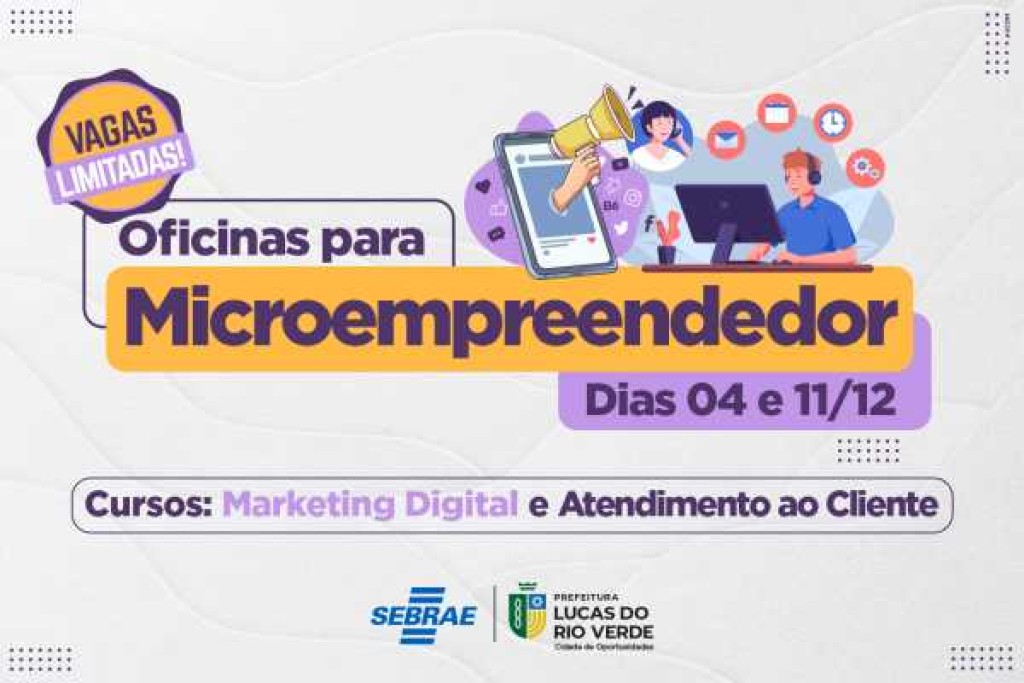 Seguindo a proposta do programa Cidade Empreendedora, a Prefeitura de Lucas do Rio Verde e Serviço Brasileiro de Apoio às Micro e Pequenas Empresas (Sebrae) realizam, nos dias 04 e 11 de dezembro 2023, duas oficinas para o Microempreendedor Individual (MEI). As oportunidades são gratuitas e as vagas são limitadas.