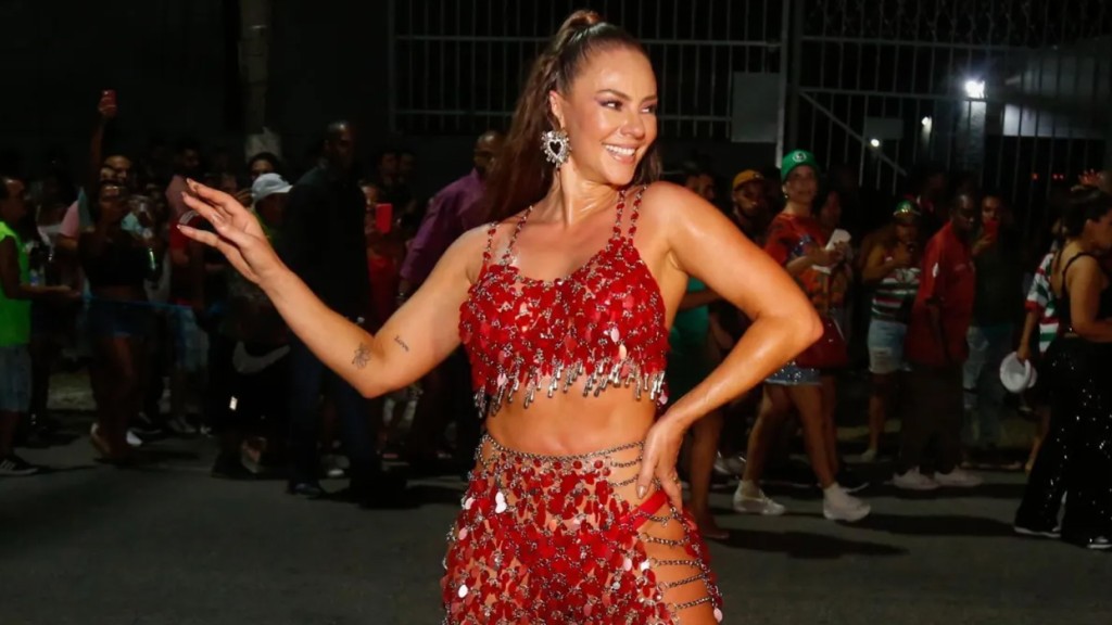 Além dela, outros famosos como David Brasil, a modelo Mariana Goldfarb e a influenciadora Mileide Mihaile também participaram do evento. Para sambar muito à frente da bateria “Invocada”, comandada pelo mestre Fafá, a atriz combinou um figurino transparente com pedrarias vermelhas.