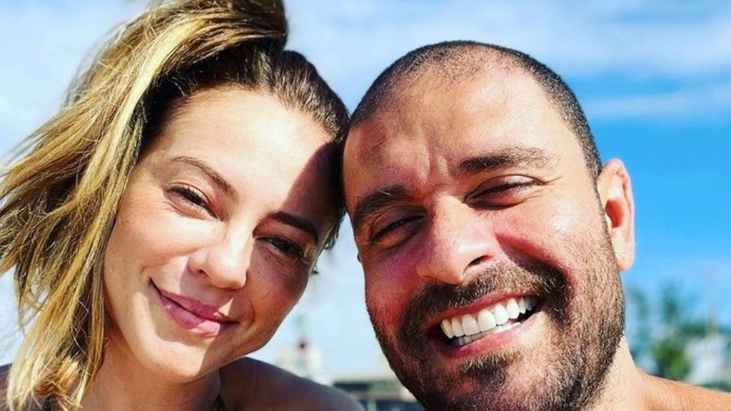 Paolla Oliveira aproveitou a quarta-feira (13), de sol para tomar banho de piscina e se bronzear ao lado do namorado, Diogo Nogueira. A atriz, de 41 anos, compartilhou em seu Instagram um clique sorridente com o cantor, de 42, em que aparece com um biquíni cor de vinho e exibindo o corpo em forma e o rosto sem maquiagem. “Filtro aqui, só o solar”, escreveu ela na legenda.