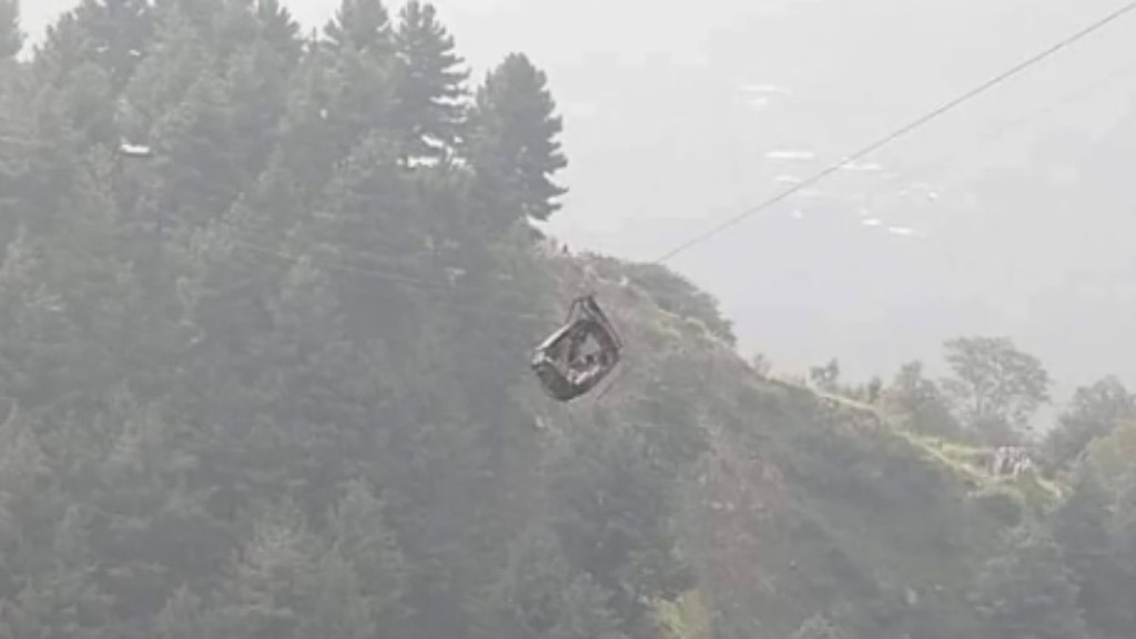 Crianças e adultos ficaram pendurados em teleférico após rompimento de cabo no Paquistão